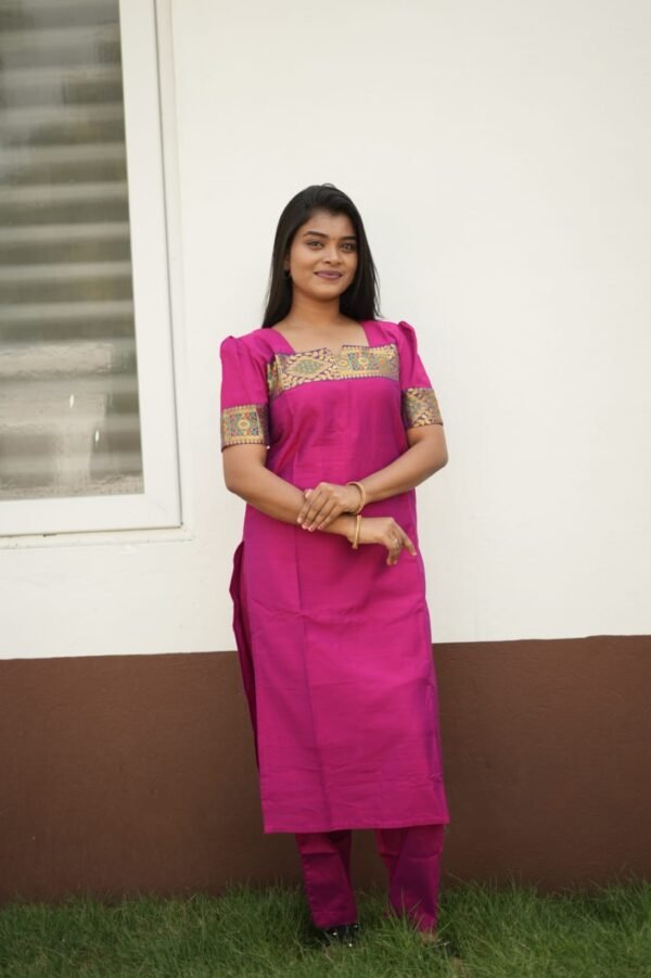 ImageDARK PINK WITH BORDER DESIGN-CST20RAMAR GREEN WITH PURPLE BUTTA SET-W113RED WITH BLUE PANT SET-W109RED STRIPE SET-W112BLACK AND BROWN CO-ORD SET-S301GREE WITH BLACK CHECKED SET-W106
