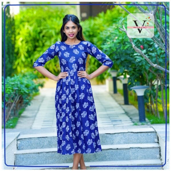 | Description | Our Feeding Friendly Indigo Mixed Cotton Long Kurta, designed to make you feel comfortable and stylish. | Introducing a stylish straight-cut kurta made from pure cotton fabric. This kurta features a timeless design and 3/4 sleeves, adding a touch of elegance. | A stylish straight-cut top made from Ikkat cotton fabric. With a height of 42 inches, this top offers a flattering fit. | Jacquard cotton fabric. Embellished floral pattern with shirt style Anarkali. 3/4th sleeve, closed neck, Anarkali Kurti. Length: 47 inches. | Pure viscose raw linen fabric. Blue shaded straight line Kurti. 3/4th sleeve. Length: 42 inches. | Absolute viscose fabric. Multi-color lines straight line Kurti. 3/4th sleeve, round Kurti neck with down string. Length: 47 inches | ||||||||||||||||||