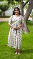 LIGHT GREEN AND PINK MATERNITY FROCK-M126